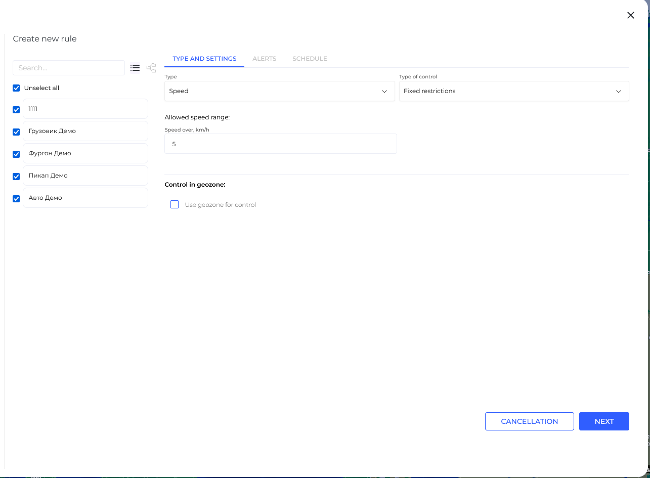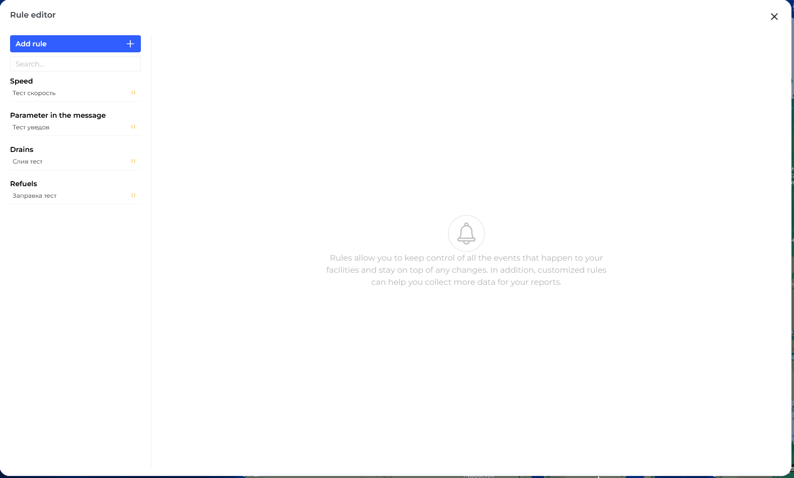 In the Wiafleet system, you can configure notifications for various events related to your objects — such as speeding, loss of connection, fuel refueling or draining, maintenance, entering or exiting a geofence, and more.