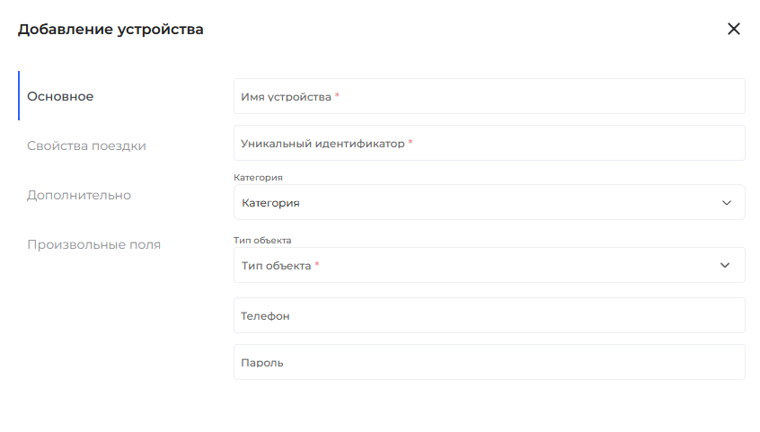Перед вами появится новое окно создания объекта, где можете изменить его Основные настройки,Свойства поездки, Дополнительные настройки.