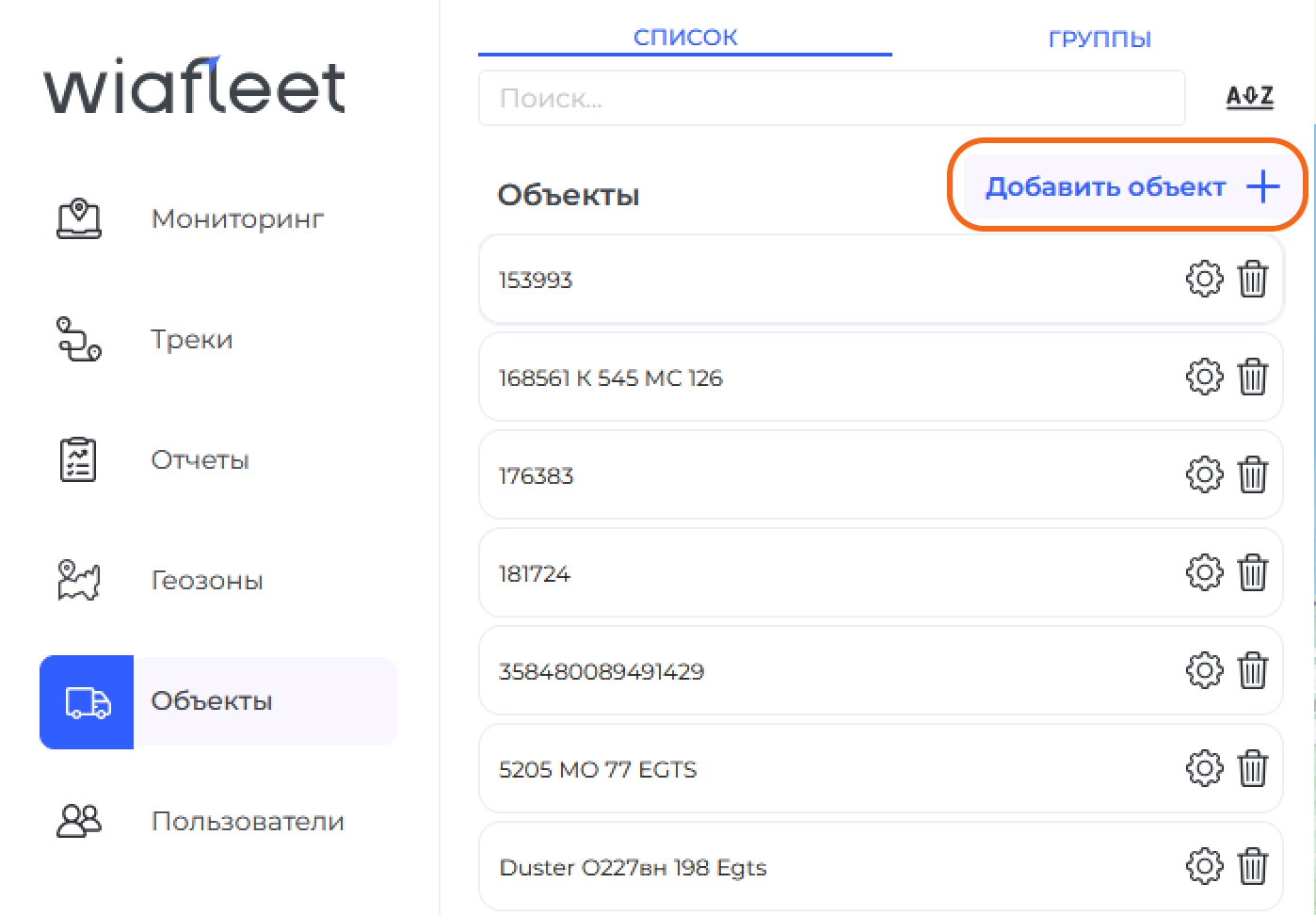 В Wiafleet объектом называют всё, за чем вы хотите вести наблюдение: это может быть транспортное средство, спецтехника, сотрудник, животное или даже стационарное оборудование.
